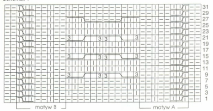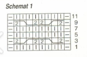 Work according to Chart 1. Only right-side rows are shown; on wrong-side rows, work stitches as they appear. Repeat rows 1–12.
