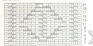 Work according to Chart 1. Only right-side rows are shown; on wrong-side rows, work stitches as they appear.