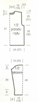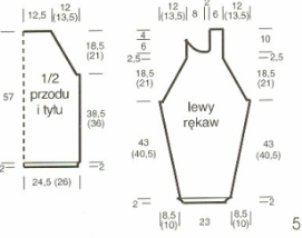 For raglan shaping at 43 cm = 108 rows (or 40.5 cm = 102 rows) from the ribbing, decrease on both sides as for the back.
