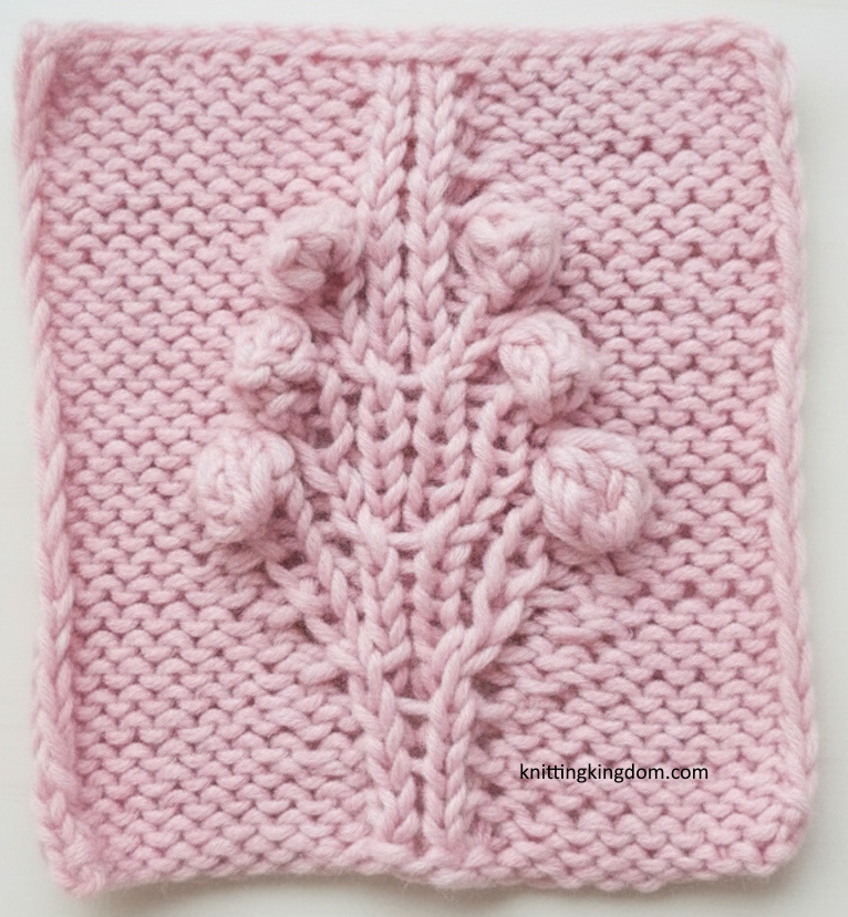 Free Bobble Grape Vine Knitting Stitch. A wonderful textured bobble stitch that resembles trailing grapevines.