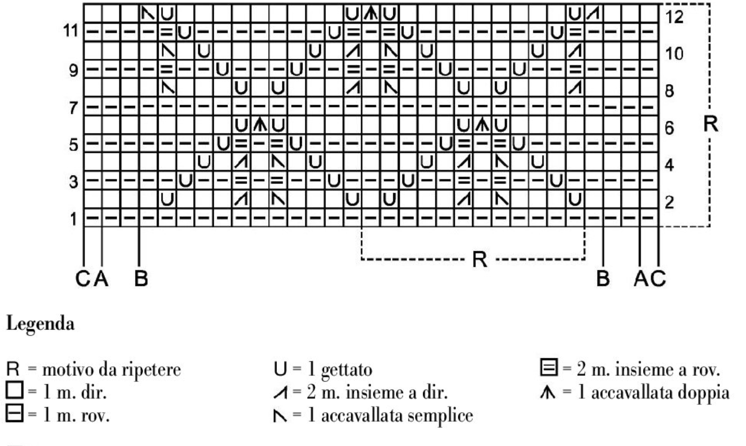- ⫽ = 2 m. insieme a rov. = Purl 2 together (P2tog)