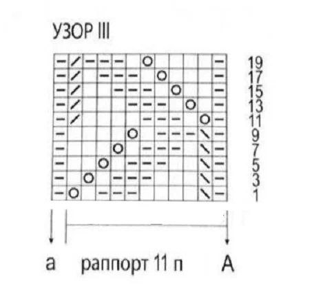 • a to A with horizontal line – Rapport 11 stitches (раппорт 11 п) – This indicates that the pattern repeat is 11 stitches wide.